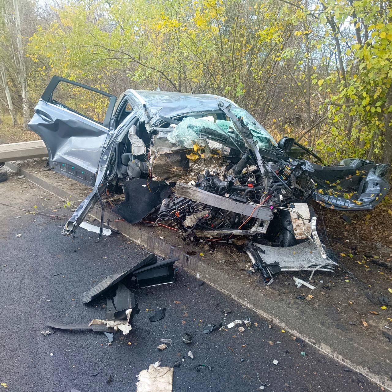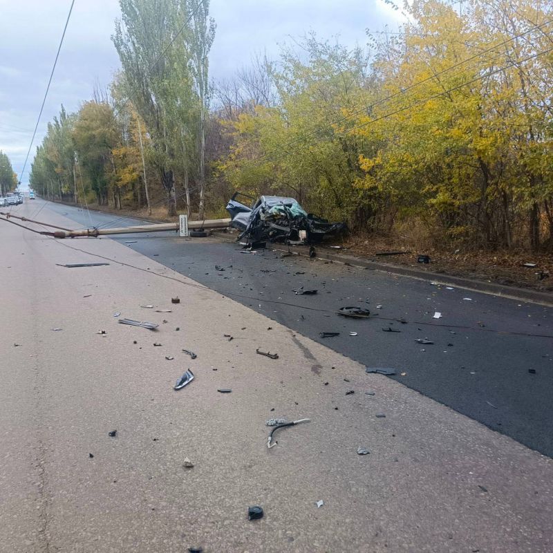 Автомобиль всмятку: водитель на большой скорости влетел в столб на одной из трасс в ЛНР