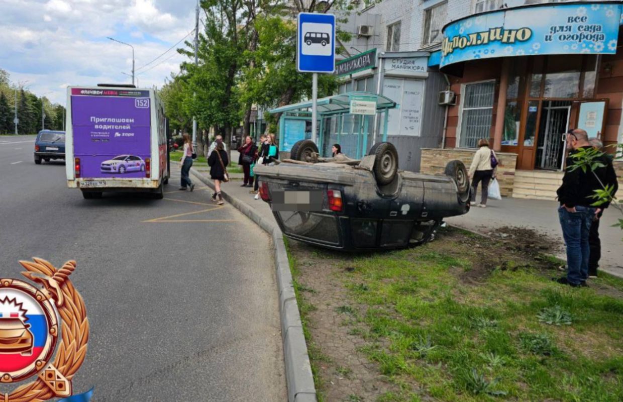 В центре Луганска авто «не вписалось» в поворот и перевернулось на крышу прямо у остановки