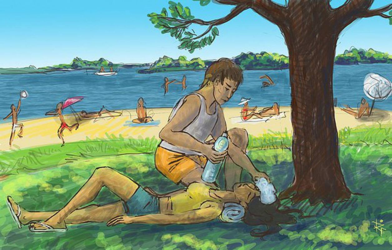 Первый случай произошел в Краснодоне в прошлую среду, 12 июля. На остановке «Дорошево» женщина почувствовала себя плохо. Стоящие рядом люди стали оказывать ей первую помощь, однако лучше ей не стало. Она находилась на грани потери сознания, поэтому пришлось вызывать «Скорую помощь». Медики, прибывшие на место, зафиксировали тепловой удар. В пятницу, 14 июля «неотложку» вызывали студенту одного из лицеев. Чтобы здоровому человеку не получить тепловой или солнечный удар, принимать солнечные ванны нужно до 11.00 и после 16.00. Следует обязательно носить головной убор. Для отдыха на пляже лучше выбирать места в тени. Перед тем, как зайти в воду, необходимо все же немного остыть. Нужно заходить постепенно. Необходимо не забывать поддерживать водный баланс организма. При температуре +20 градусов минимум выпиваемой жидкости составляет 1,5 литра, при +26 градусах - 1,9 литра, а при +32 градусах - уже 3 литра.