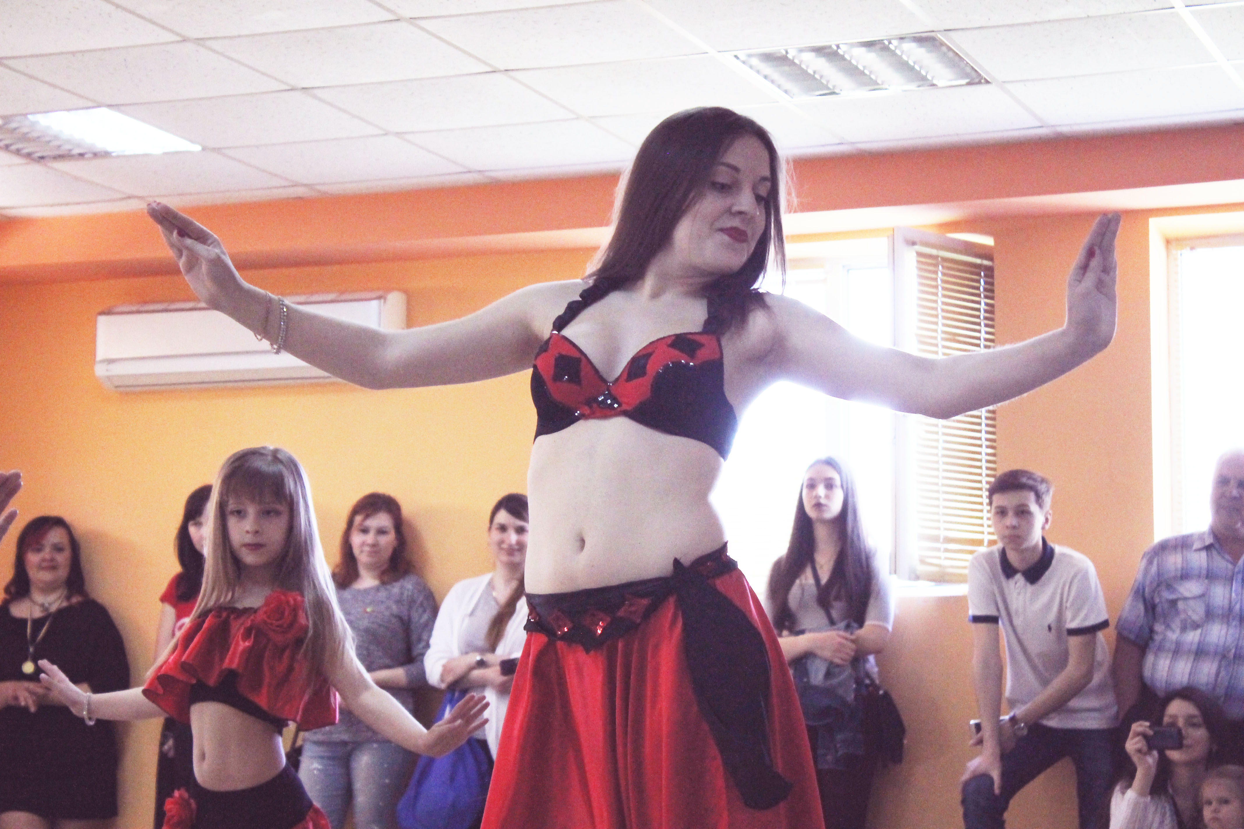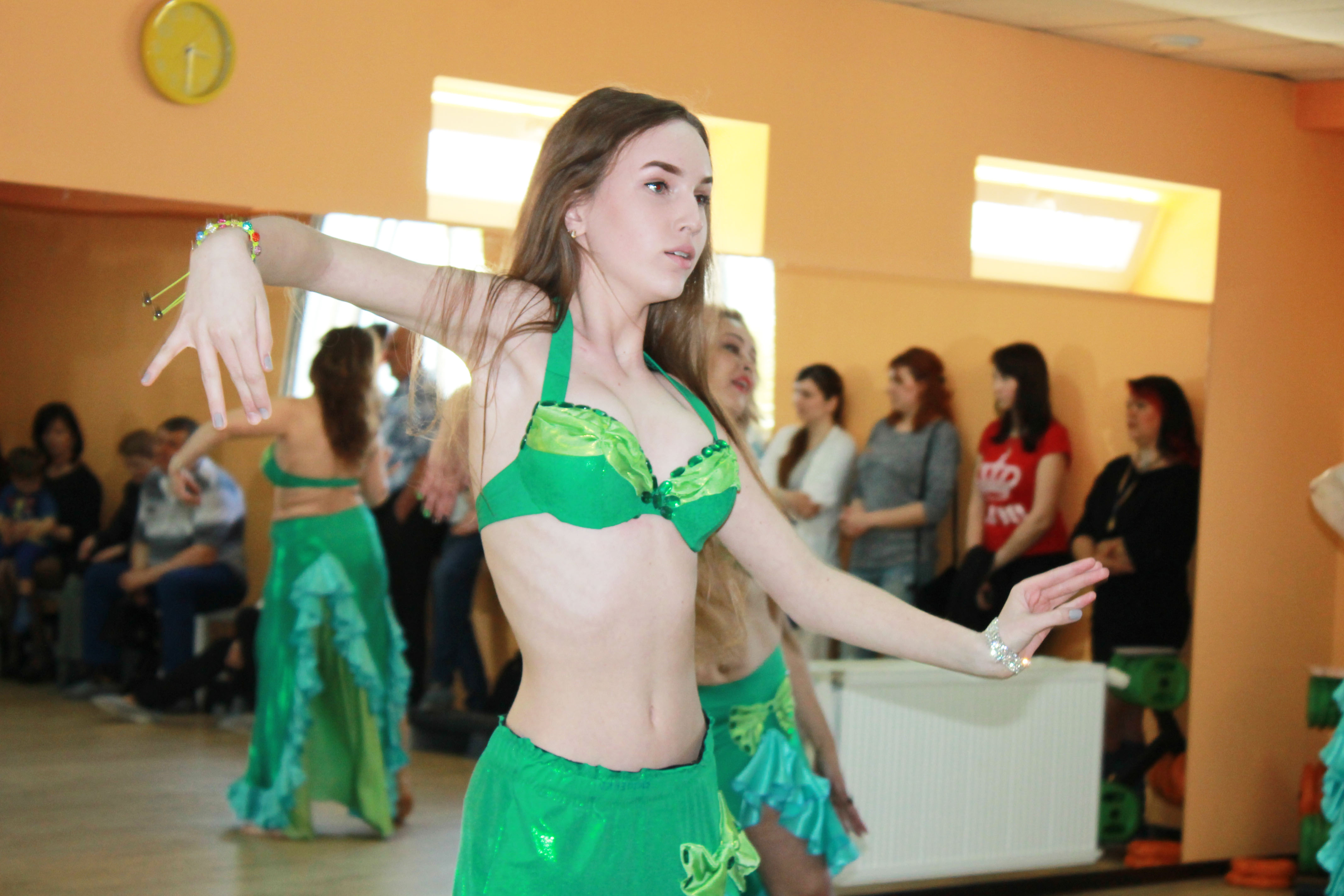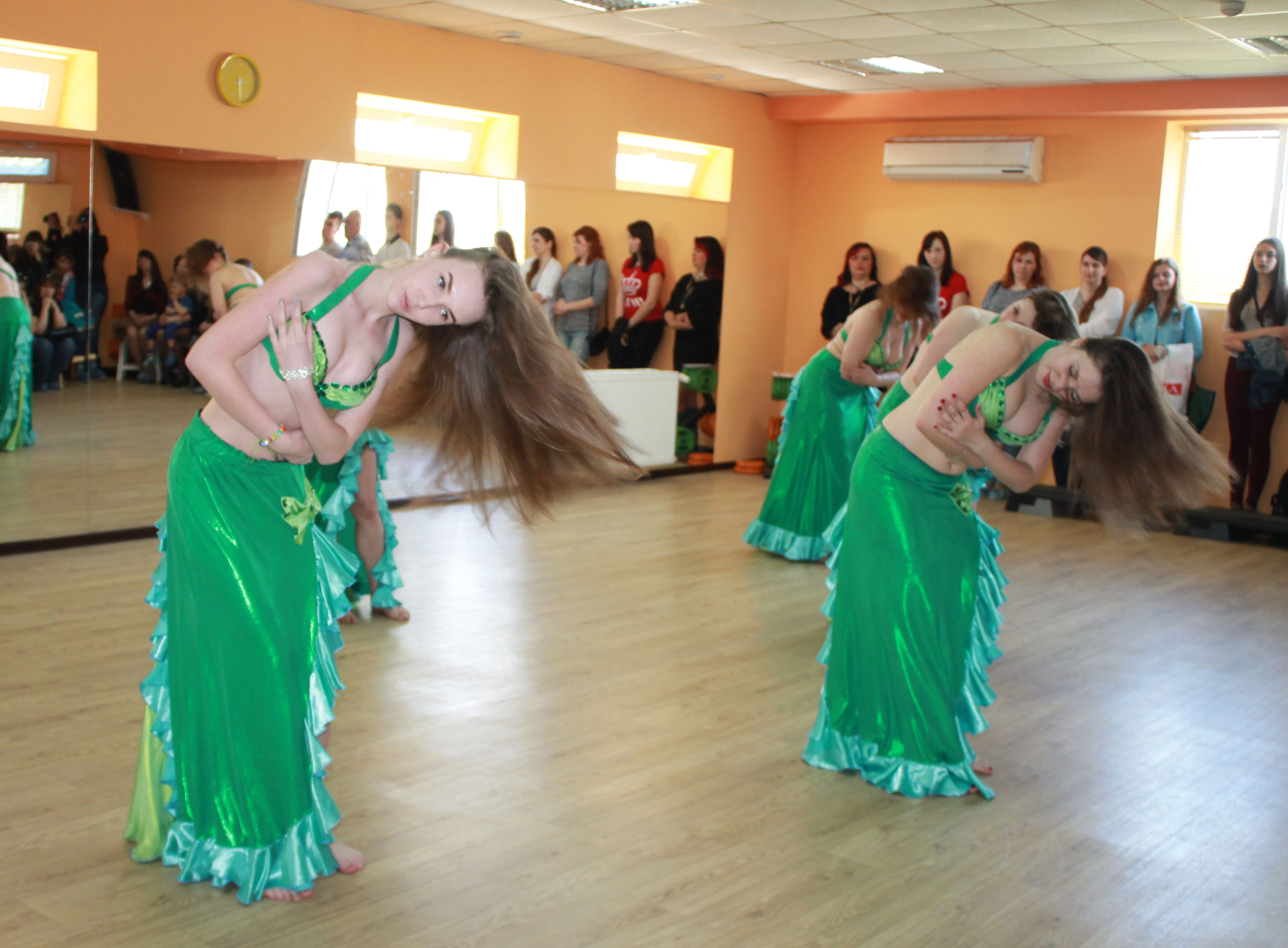 В этот теплый весенний день гостей спортклуба также порадовали показательные выступления спортсменок - воспитанниц клуба.Изящные, грациозные движения девушки продемонстрировали в восточных танцах, пилатесе, современных танцах. Ритмичные движения показали исполнительницы тверка. «Зажгли» зал представительницы таких направлений как степ-аэробика, функциональный тренинг – в зале действительно стало жарко и даже зрители хотели присоединиться к танцевальным движениям и силовым нагрузкам.