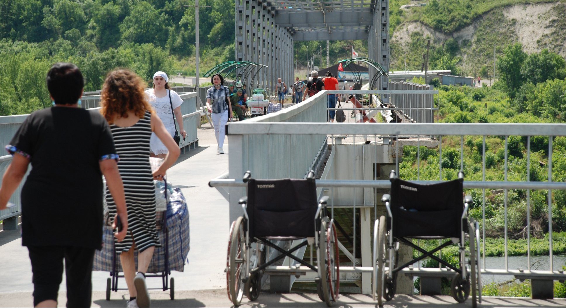 23 июня транспорт по мосту еще не ходил – я шла пешком. Уже позже в интернете прочла о звонке женщины-луганчанки с инвалидностью. Она сообщила, что физически не может по жаре дойти километр от моста до КПВВ, из-за чего вынуждена была отдать 500 гривен «тачечнику» за ее подвоз.