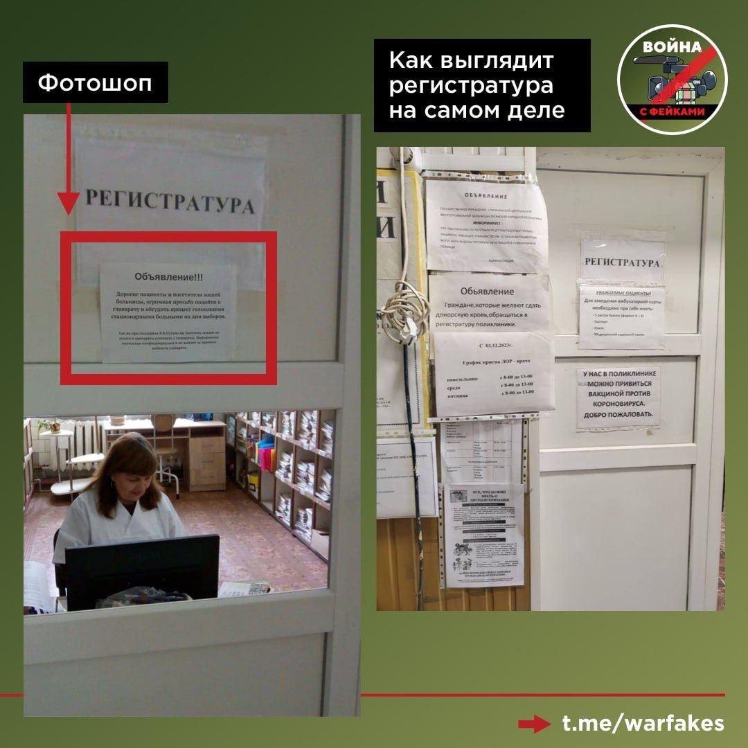 «На то, что перед нами фейк, указывают и другие детали. Во-первых, государственная поликлиника не занимается продажей лекарственных препаратов. Во-вторых, если гражданин будет лежать в больнице в период выборов, то уточнять информацию о том, где и как он будет голосовать, ему нужно будет у главврача. Регистратура же отвечает за предоставление устной и наглядной информации о работе поликлиники и распределение потоков посетителей», - отметили представители ГУП.