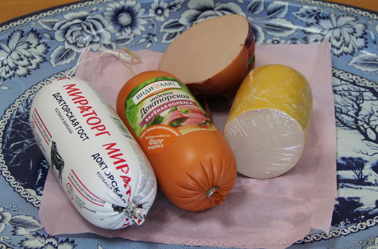 Для дегустации в супермаркете мы выбрали четыре образца докторской колбасы самых популярных марок. Все были выбраны и куплены в один день в одном месте, условия хранения совпадали.