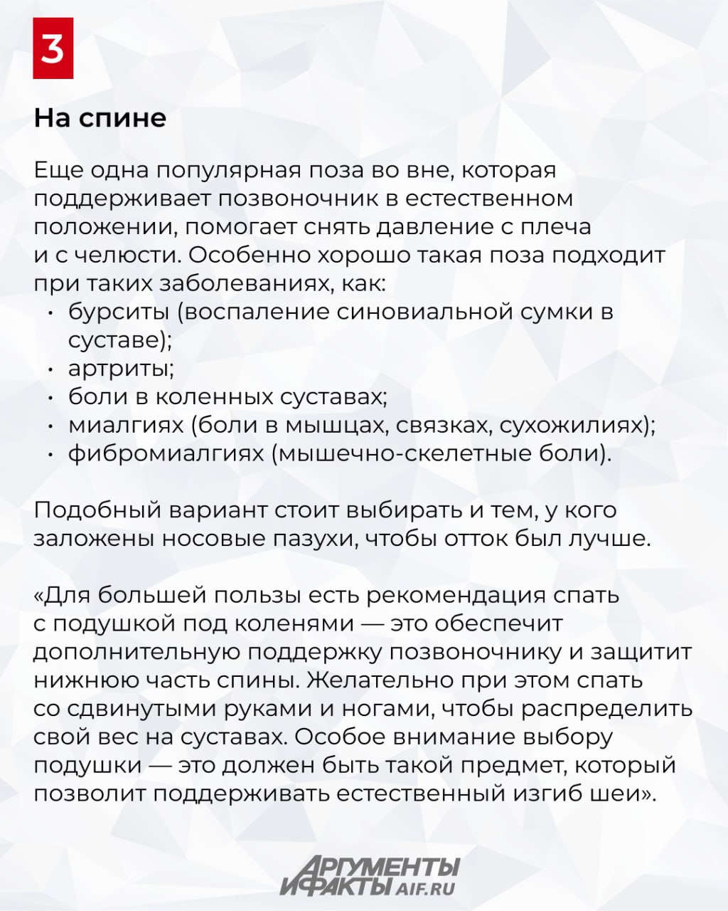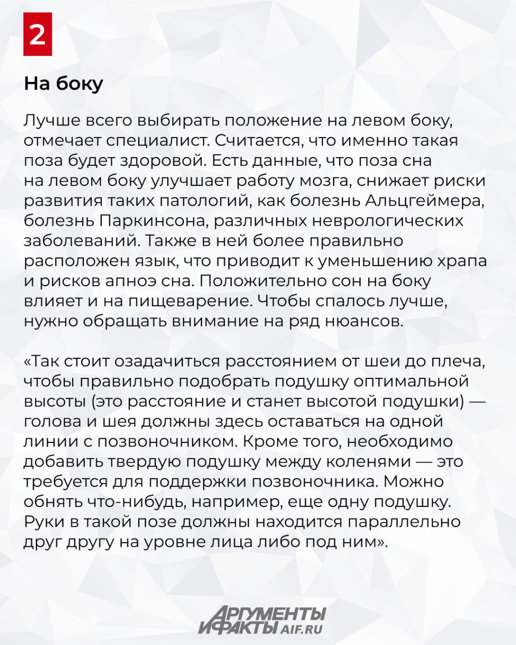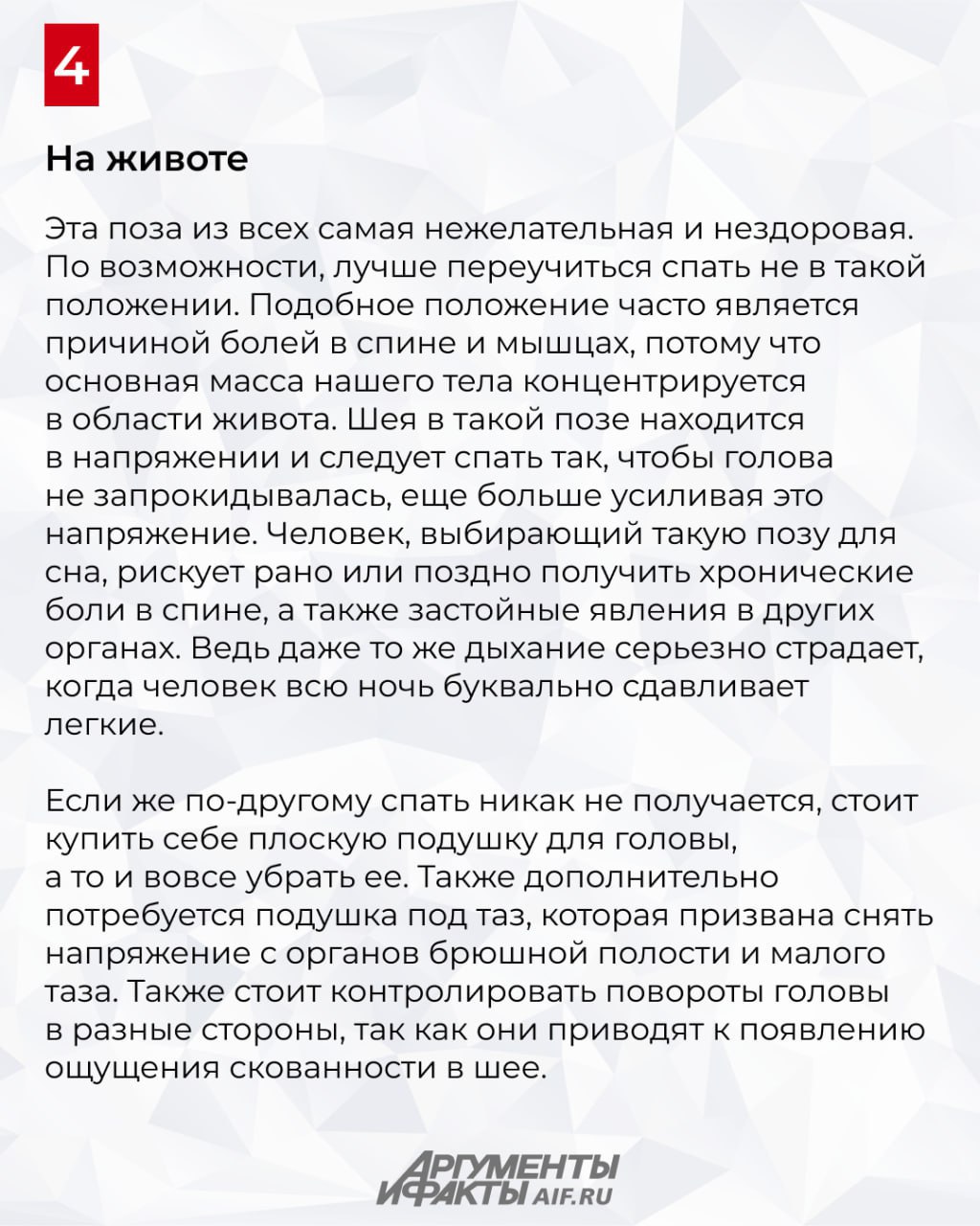 «Аргументы и факты» в карточках собрали информацию о том, какая поза для сна самая лучшая.