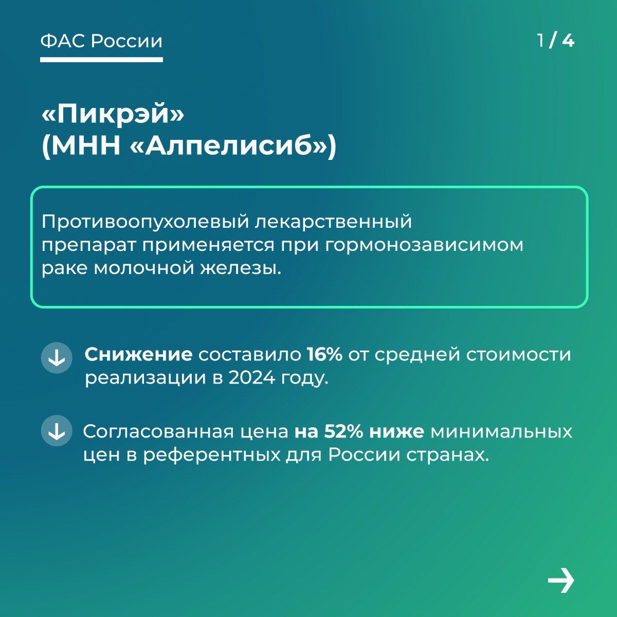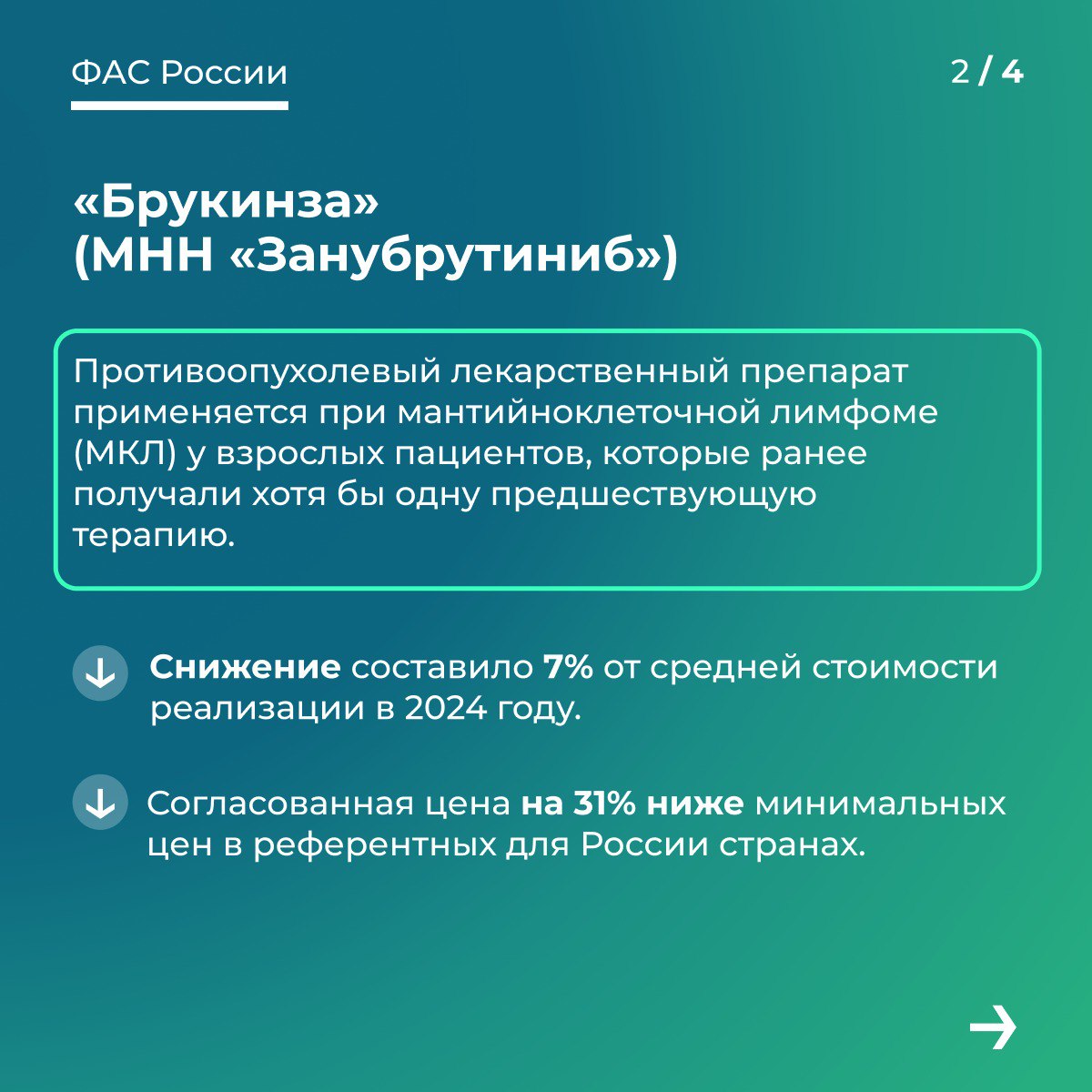 В ФАС отметили, что снижение стоимости препаратов повысит их доступность для граждан России. В больницах пациентам их должны выдавать бесплатно в рамках программы бесплатного оказания медицинской помощи.