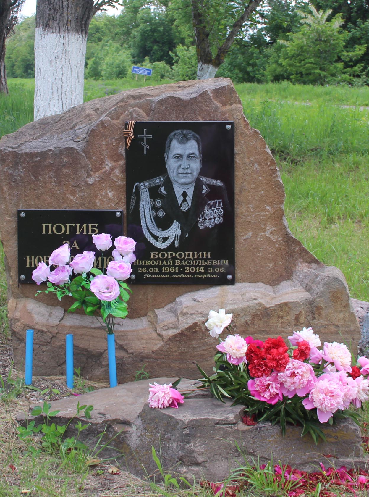 27 мая 2014 года я, наверное, запомню на всю жизнь. В этот день к центральной усадьбе ехала колонна ополчения, но на въезде в село украинской армией была организована засада, и состоялся неравный бой, где погиб командир ополченцев, полковник Николай Иванович Бородин. Этот человек организовал и повел за собой людей, воевать за родную землю. Такое отношение к Отечеству - настоящий пример для подрастающего поколения. Я лично с ним знаком не был, но увидеть удалось.
