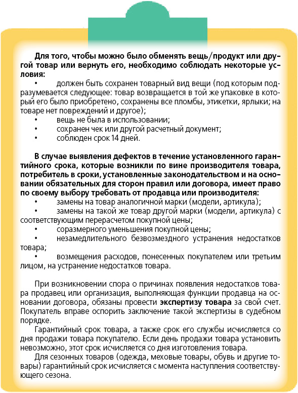 Какими правами обладает потребитель при возврате, обмене и гарантийном ремонте товара?