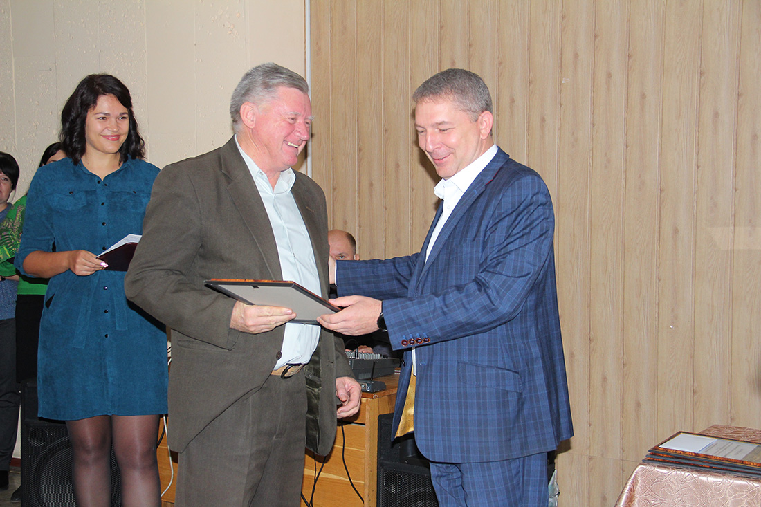 В завершении небольшого интервью состоялся праздник, посвященный 45-летию предприятия. Торжественная часть прошла в фойе здания. Первым с приветственным словом к коллегам обратился руководитель предприятия Андрей Бондаренко. Андрей Владимирович вспомнил