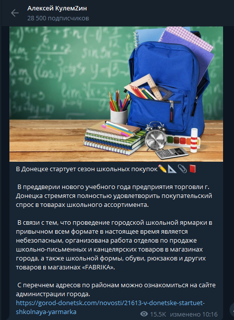 Торговые предприятия столицы ДНР готовы к обеспечению покупателей ассортиментом товаров для школы.