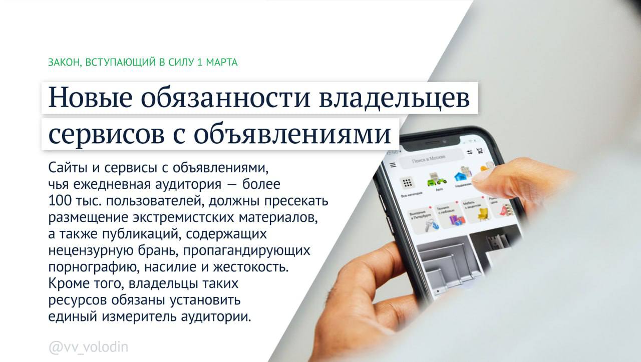 Спикер Госдумы Вячеслав Володин напомнил, какие законы в РФ вступают в силу с 1 марта. Он сообщил, что в Москве, Белгородской и Московской областях заработает эксперимент по дистанционной продаже лекарств. Кроме того, начнет действовать запрет на торговлю животными в неподобающих условиях в зоомагазинах и на птичьих рынках. Также затронут вопрос о социальном обеспечении жителей ЛНР и ДНР.