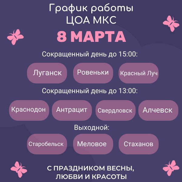 График работы МФЦ в ЛНР и абонентских центров МКС на 8 Марта