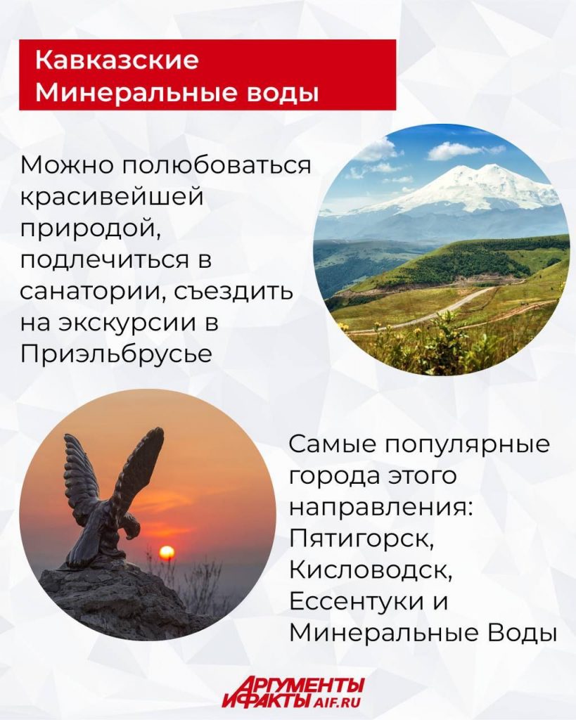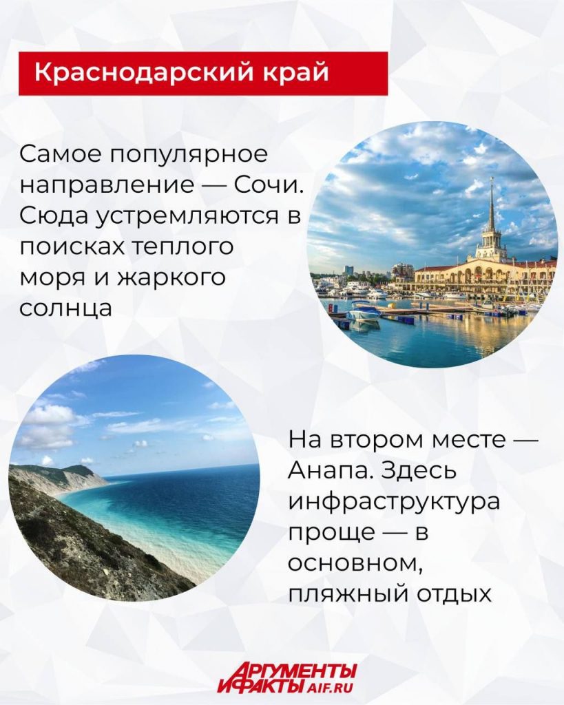 Телеграм-канал «Аргументы и Факты — АиФ.ru» проанализировал и выделил самые часто посещаемые курорты в России.