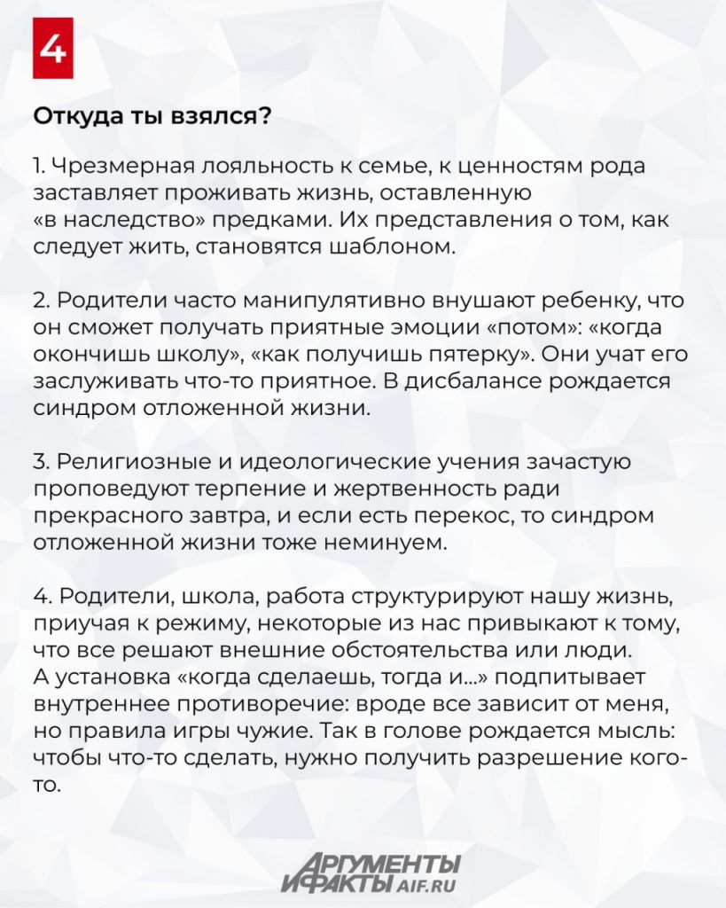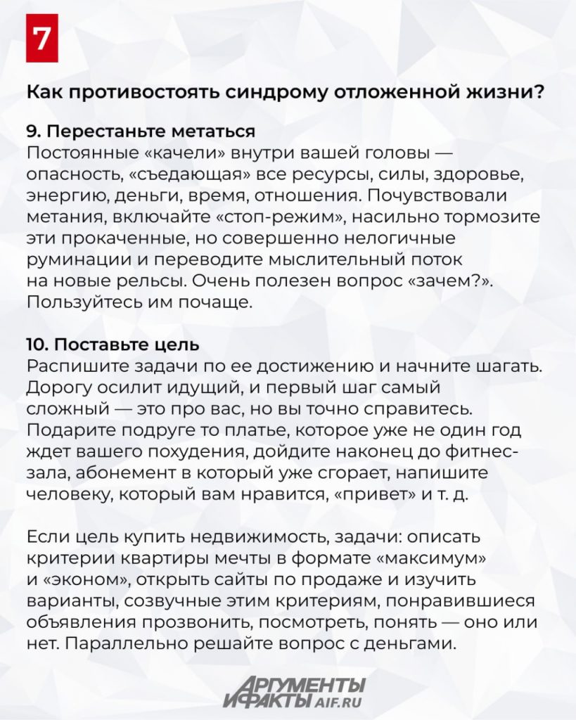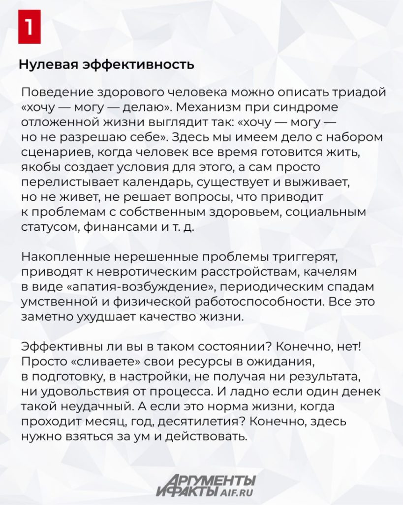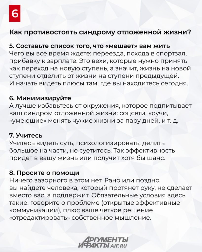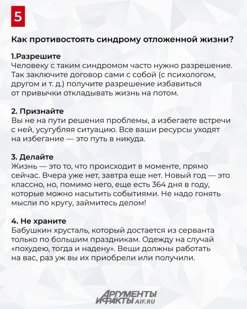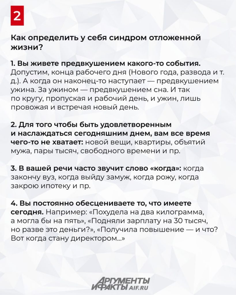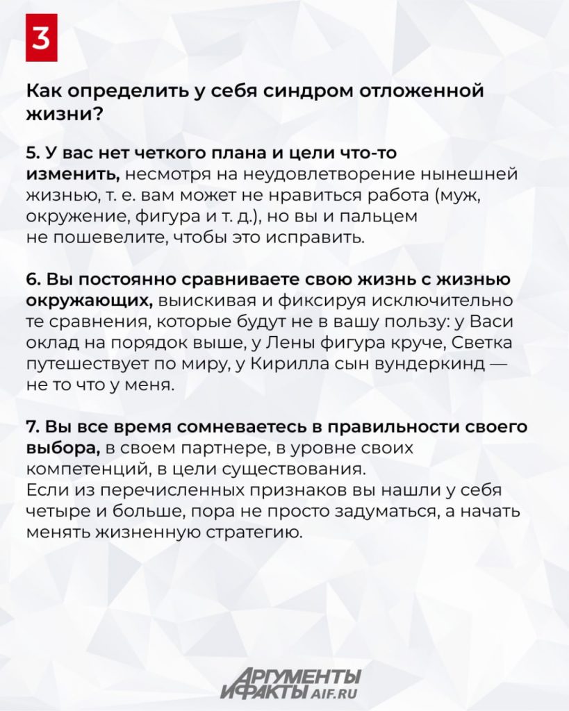 Издание «Аргументы и факты» подготовило карточки, в которых подробно описано, как выявить у себя такой синдром и как с ним бороться.