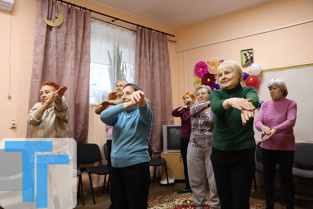 В день прихода корреспондента Юлия Анатольевна Бирклбауэр, организатор культурного досуга людей пожилого возраста, проводила занятие восточной практики цигун. Группа пожилых женщин под приятную восточную музыку под ее руководством выполняли специальные физические упражнения, которые помогают поддерживать хорошую физическую форму.
