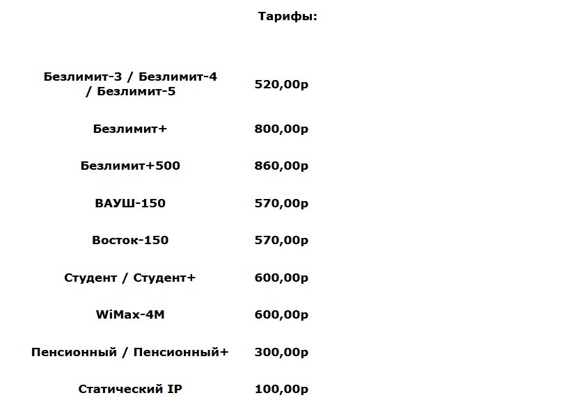 Уже со следующего месяца абоненты будут оплачивать услуги Интернета по следующим тарифам: