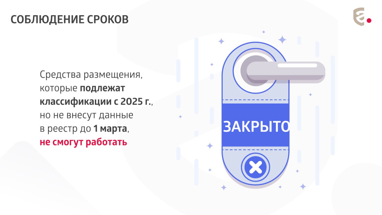Средства размещения, которые подлежат классификации с 2025 года, но не внесут данные в реестр до 1 марта, не смогут работать.