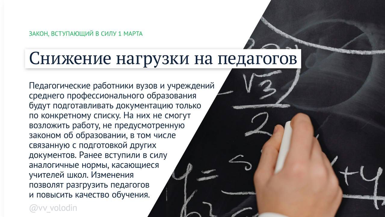 С начала марта в России вступили в силу новые законы и изменения к ним. Председатель Государственной Думы Вячеслав Володин напомнил, что изменилось в правовом поле.