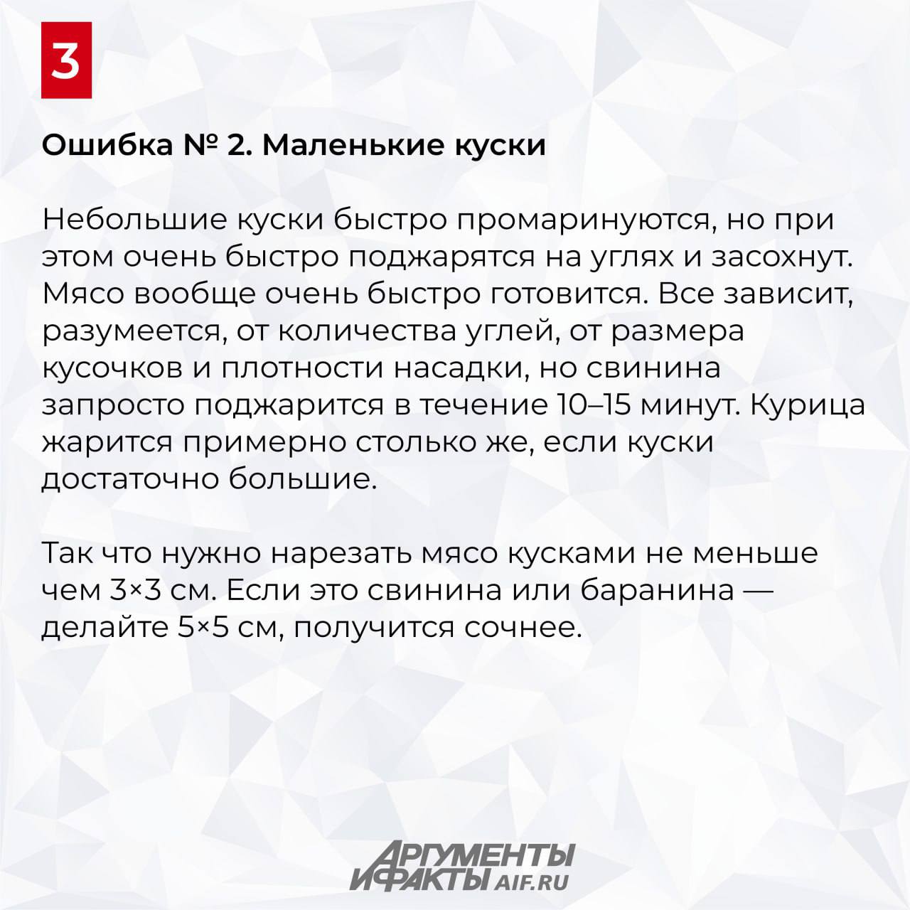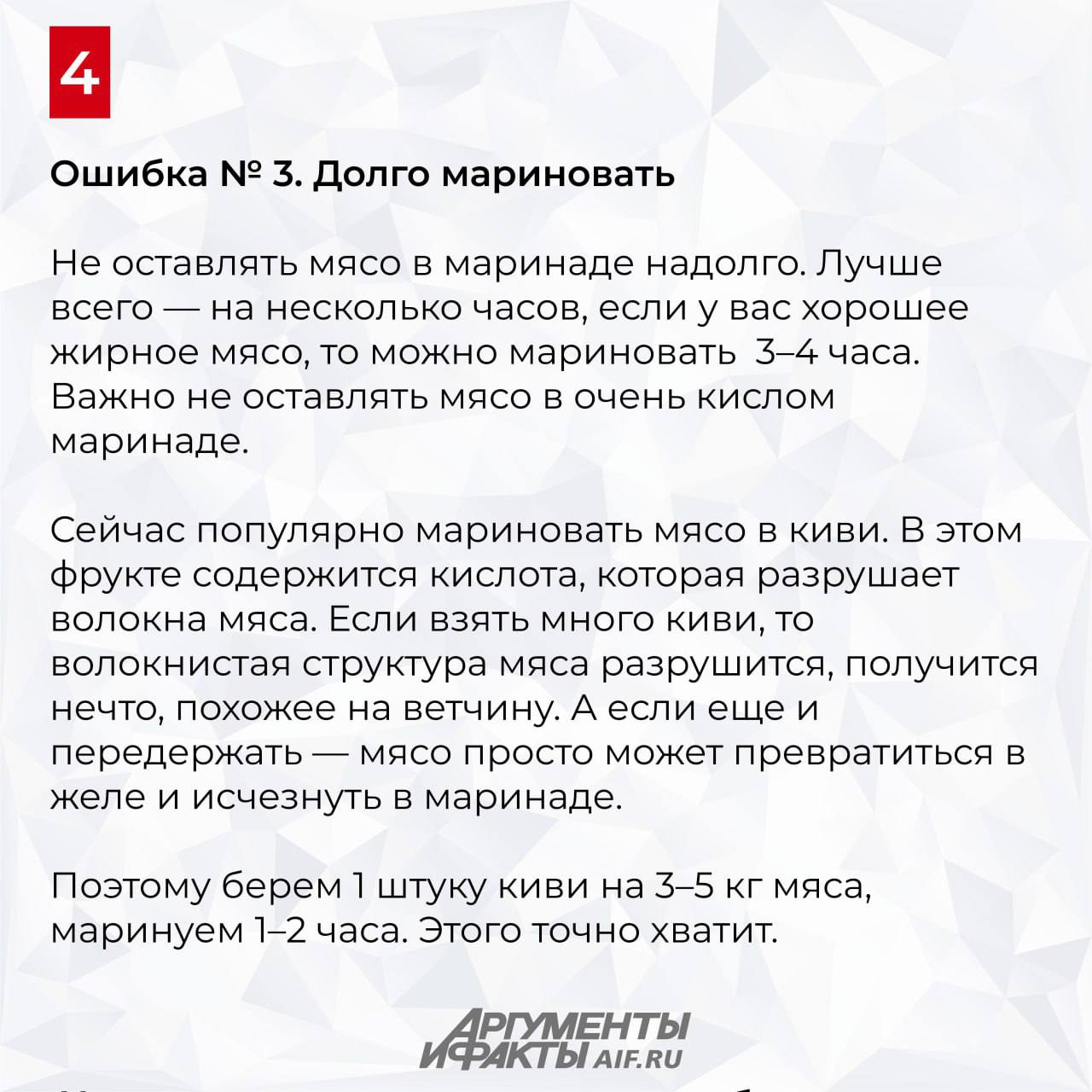 Чтобы шашлык стал настоящим кулинарным шедевром, важно учитывать несколько нюансов. "Аргументы и факты" назвал самые распространённые ошибки, которых стоит избегать, чтобы мясо получилось сочным и вкусным.